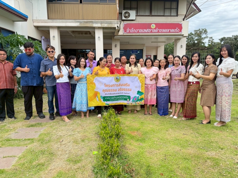 นายวิเชียร เจนชัย นายกเทศมนตรีตำบลตลาดแร้ง มอบหมายให้นางลำใย ฆ้องโนนแดง รองนายกเทศมนตรีตำบลตลาดแร้ง ข้าราชการ และเจ้าหน้าที่ เข้าร่วมโครงการส่งเสริมคุณธรรม จริยธรรม ประจำปีงบประมาณ พ.ศ.2568 ณ เทศบาลตำบลตลาดแร้ง