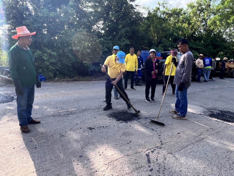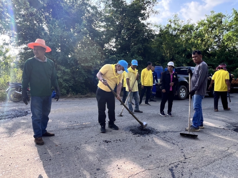 นายพลวรรธนพล ศักดิ์วรรธนชัย นายอำเภอบ้านเขว้า/ผอ.ศูนย์อำนวยการจิตอาสาพระราชทานอำเภอบ้านเขว้า พร้อมด้วยนายวิเชียร เจนชัย นายกเทศบาลตำบลตลาดเเร้ง ข้าราชการ พนักงาน เจ้าหน้าที่ กำนนัน ผู้ใหญ่บ้าน เเพทย์ประจำตำบล สารวัตรกำนัน เเละผู้ช่วยผู้ใหญ่บ้าน ตำบลตลาดเเร้ง ซ่อมเเซมหลุมบ่อบนผิวถนนปรับปรุงผิวถนนให้เรียบ เเละเก็บกวาดขยะสิ่งกีดขวางข้างทาง บริเวณถนนจากบ้านกุดยางไปบ้านตาดพัฒนา เพื่อสภาพถนนดีขึ้นเเละประชาชนสามารถสัญจรไปมาได้อย่างปลอดภัย