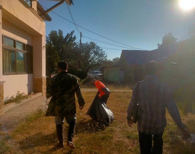 มอบหมายกองสาธารณสุขและสิ่งแวดล้อม ดำเนินการเก็บขยะและทำความสะอาดบริเวณรอบสำนักงานเทศบาลตำบลตลาดแร้ง |